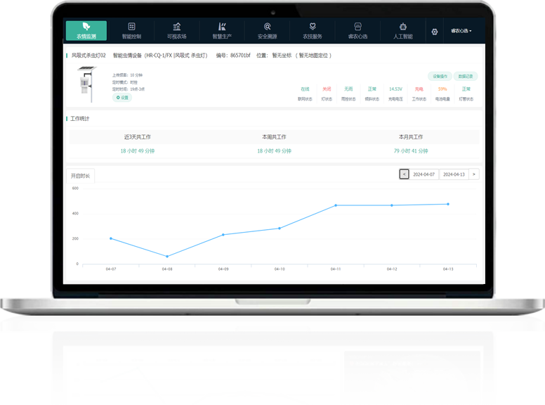 具備光控、雨控、時(shí)控 3種智能控制切換模式,實(shí)現(xiàn)依據(jù)晝夜、天氣、時(shí)段變化自動(dòng)控制燈光開(kāi)光和設(shè)備啟停,也可遠(yuǎn)程使用電腦/APP隨時(shí)隨地聯(lián)網(wǎng)遠(yuǎn)程管理,無(wú)需人工看管也能智能殺蟲(chóng)。
